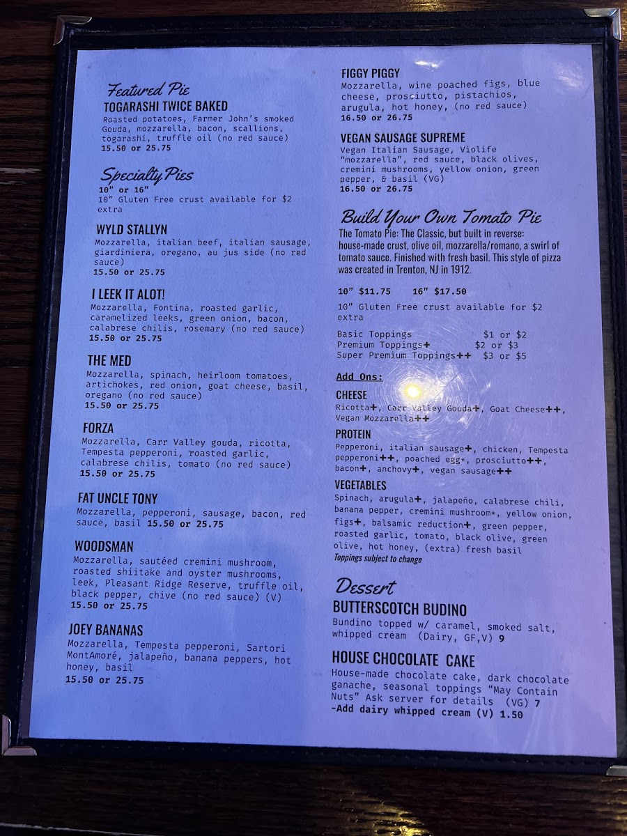 Salvatore's Tomato Pies - Livingston Menu
