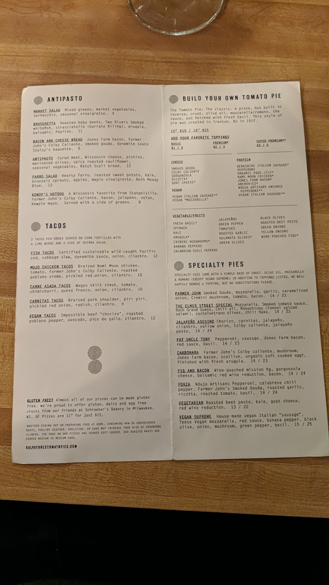 Introducing Salvatore's Tomato Pies - Livingston, an inviting gem nestled at 10 N Livingston St, Madison, WI. This dog-friendly spot offers a delightful culinary experience that keeps locals and visitors alike coming back for more. Renowned for its perfectly baked crust, Salvatore's is a haven for pizza aficionados. Customers rave about the Sal's Supreme, highlighting the use of premium ingredients that elevate every bite. The burata appetizer has also garnered acclaim, making it a must-try for those who appreciate fine cheese.